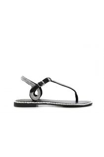 Zehentrenner-Sandalen mit nuanciertem Mikrostrass und einer besonderen, die gesamte Leder-Innensohle einrahmende Kontrast-Bastnaht.