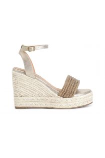 Sandalen mit mignon-strassverzierung am obermaterial. 10.5-cm-seilkeil und 3.5-cm-plattform. knöchelriemen. innensohle aus leder.