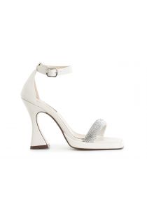 Sandalen mit strassbesetztem band und blockabsatz. hoher barockabsatz. verstellbares knöchelriemchen.