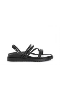 Asymmetrische sandalen mit fünf mit strasssteinen besetzten riemen innensohle aus leder auf bequemem fußbett.