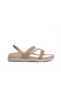 Asymmetrische sandalen mit fünf mit strasssteinen besetzten riemen innensohle aus leder auf bequemem fußbett.