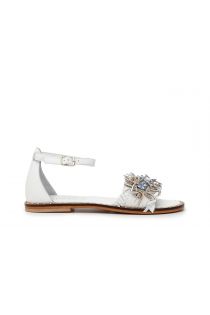 Sandalen mit weichem gerüschtem Nappalederband und umwickelter Plateausohle aus Leder im Sackdetail