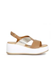 Sandalen mit zweifarbigem crossover. bequeme schuhform. 6 cm keil.