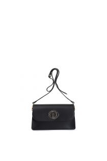 Umhängetasche aus glattleder mit überschlag. ton-in-ton emailliertes ovales logo. magnetverschluss. tasche mit verstellbarem schultergurt.