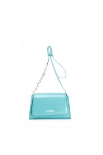 satteltasche in lacklederoptik mit kettendetail und logo-charms aquamarine