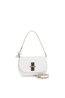 Umhängetasche mit überschlag. abnehmbarer schleifenanhänger. kontrastierende rippen. drehverschluss twist turn lock mit cafènoir emaille-logo. tasche mit schulterriemen.