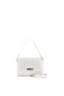Umhängetasche mit überschlag und fädelung. vorhängeschloss mit logo als zubehör. tasche mit schulterriemen.