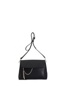 Umhängetasche aus glattem saffiano mit überschlag. reißverschlusszug mit metallbuchstaben und abnehmbarer kette. magnetverschluss. tasche mit zwei fächern.