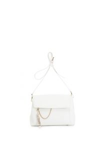 Umhängetasche aus glattem saffiano mit überschlag. reißverschlusszug mit metallbuchstaben und abnehmbarer kette. magnetverschluss. tasche mit zwei fächern.