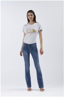 Superstretch-denim-jeans mit schlaghosen-passform.