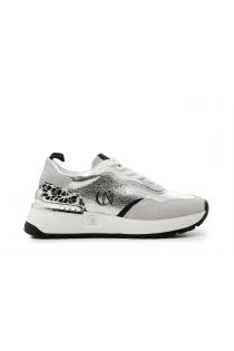 Schnür-Sneaker mit Oberschuh aus Rauleder, Metal Crack, Animalier-Einsätzen und metallischem CafèNoir-Logo an der Seite. Neue Running-Sohle mit Spoiler mit Metallic-Effekt.