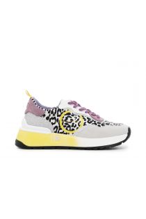 Schnür-Sneaker mit Oberschuh aus Rauleder und Stoff mit Leopardenmuster. Neue Running-Sohle mit Metallic-Spoiler-Effekt und aufgesprühter Dégradé-Verzierung mit erhabenem CafèNoir-Logo.
