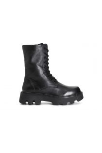 Einfarbige lederstiefelette zum schnüren für damen. innensohle aus leder und profilsohle.