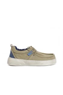 Herrenschnürschuhe mit stoffeinsatz. die innensohle ist aus leder. die sohle ist hoch h. 3 cm. dieser schuh garantiert komfort und halt beim gehen das modell vereint auf nüchterne weise komfort und stil.