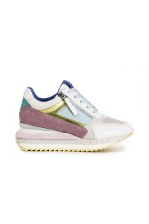Sneaker mit schnürung und seitlichem reißverschluss zweifarbige keilsohle mit einer geschwungenen und dynamischen form.