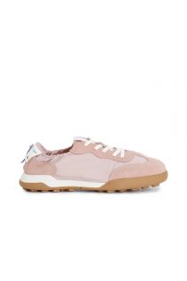 Schnürsneaker aus nylongewebe und wildleder. individualisierung mit logo und strasssteinen auf der rückseite. innensohle aus leder. leichter flexibler schuh mit funktionellem stil. diese sneaker begleiten sie sowohl beim training als auch an arbeitsreichen tagen in der stadt.