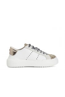 Damen-sneaker mit glitzer- und spiegelelementen an der schuhspitze und gemusterter schnürung. die innensohle ist aus leder gefertigt.