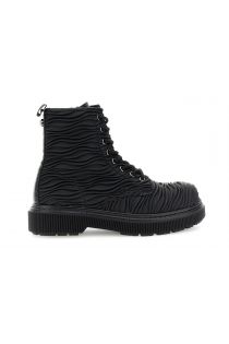 schnürstiefelette mit plissee-effekt black