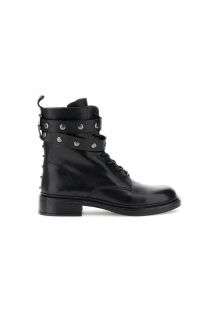 schnürstiefeletten aus leder mit verzierten riemen black
