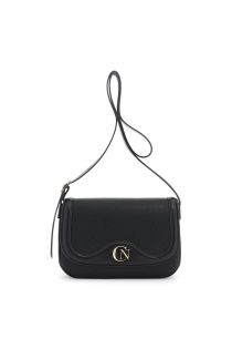 Verstellbare Schultertasche aus genarbtem Kunstleder mit konturierter Klappe, gepolstertem Rahmen und metallenem Café-Logo für eine unverwechselbare und elegante Note.