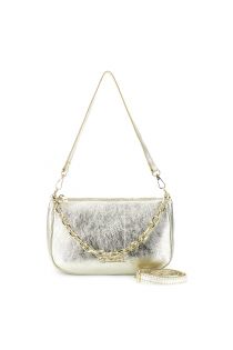 schultertasche aus laminiertem leder mit goldenem kettenhenkel light gold