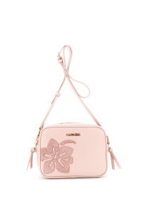 schultertasche aus lederimitat mit floralen applikationen powder