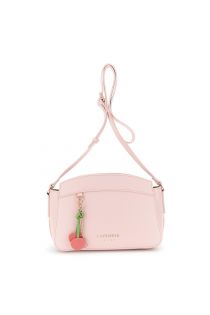schultertasche in saffiano-optik mit anhänger pink