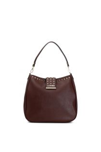 Schultertasche mit Riegelverschluss, der mit facettierten Nieten verziert ist. Der obere Rand ist genauso verziert