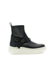 Schwarze Leder-Ankle-Boots mit Schmucksteinriemen und 4 cm hoher Plateausohle. Textilfutter, Lederinnensohle und innenliegender Reißverschluss. Elegant, bequem und perfekt für jeden Look.