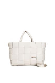 Shopper mit großem leicht gepolstertem geflecht reißverschluss weichen griffen zum tragen über der schulter und schulterriemen zum crossbody-tragen.