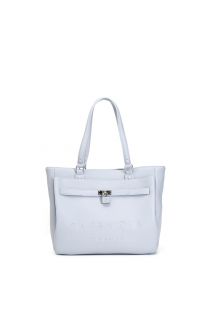 Shopper mit maxilogo „cafènoir firenze“ in hochfrequenzdruck. doppelte griffe mit umwickelten knöpfen. tasche mit metallschließe und vorhängeschloss mit logo. verschluss mit reißverschluss.