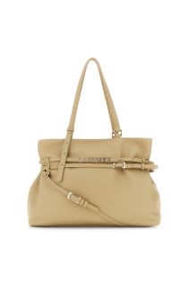 Einkaufstasche aus genarbtem Kunstleder mit verstellbaren Tragegriffen, Riemen mit Café Noir-Schriftzug und Zierschnallen. Geräumiges Innenfach mit Trennwand und Reißverschluss.