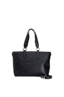 Shoppingbag aus weichem Material mit vielfach aufgedruckter Aufschrift „CafèNoir Firenze“ und neuen personalisierten kleinen Nieten an der Griffbefestigung