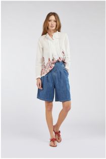 Shorts aus weichem Chambray-Gewebe mit Applikation aus länglichen Glasperlen an den Taschen, die für einen lebhaften Touch sorgen. Kleine Abnäher in der Taille, die in Höhe der Taschen ein wenig Volumen schaffen.
