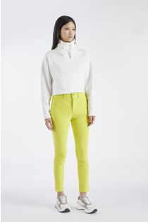 Stückgefärbte Hose mit Skinny-Passform und hohem Bund aus einem komfortablen geprägtem Samt und kostbar anmutendem lackiertem Knopf