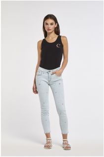 Jeans brigitte skinny-modell aus stretchgewebe mit eleganter strassapplikation an den beinen.