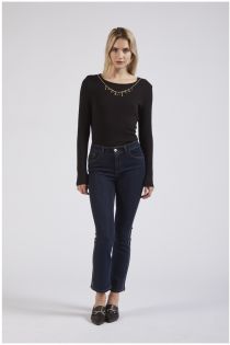 slim denim mit strass an den seiten indaco