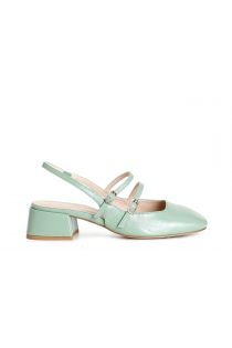 slingback aus lackleder mit zwei schnürschnallen auf der rückseite sage