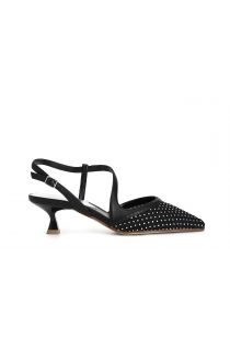 slingback-pumps asymmetrisch, mit strassnetz vorne black