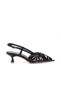 slingback-pumps in lacklederoptik mit gitterschaft black
