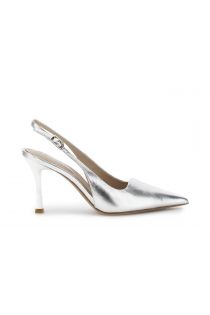 slingback-pumps mit dekolleté aus laminiertem leder silver