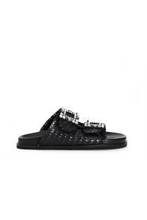 slipper aus gewebtem leder mit doppelter schmuckschnalle black