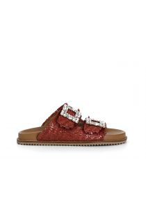 slipper aus gewebtem leder mit doppelter schmuckschnalle bordeaux