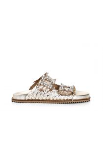 slipper aus gewebtem leder mit doppelter schmuckschnalle light gold