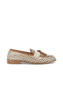 Perforierte damen-loafer aus leder mit dekorativen quasten. lederfutter und -innensohle für maximalen komfort und atmungsaktivität. niedriger 1.8 cm absatz ideal für elegante und alltagstaugliche looks.