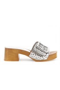 Slipper mit perforiertem obermaterial. 6 cm hoher klobiger absatz.