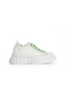 sneaker aus gefranstem stoff mit kontrastnähten white/green