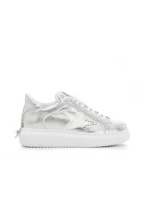 Sneaker mit hochgezogener Sohle aus laminiertem Leder mit einem dekorativen Stern an der Seite, verziert mit dem CafèNoir-Logo und kleinen Nieten