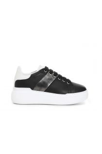 Sneaker aus Leder mit dicker Gummisohle und Details in derselben Kontrastfarbe wie Schnürsenkel und Ferse