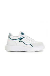 sneaker aus leder mit spiegeldetail auf schalensohle mint combo